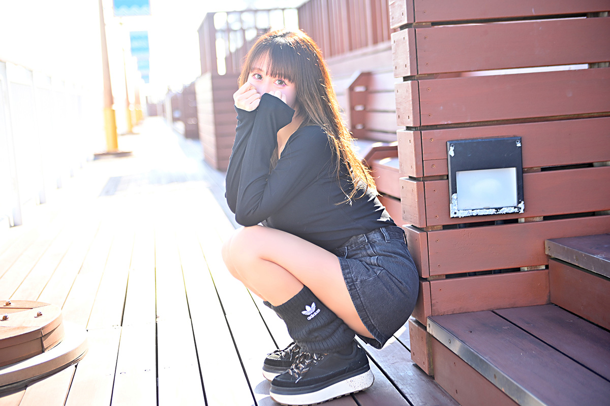 印象的な大きな瞳のアイドルフェイス。ミニマムボディにきれいな形の超美乳・感激レベルの美クビレで、なんとパ○パン!